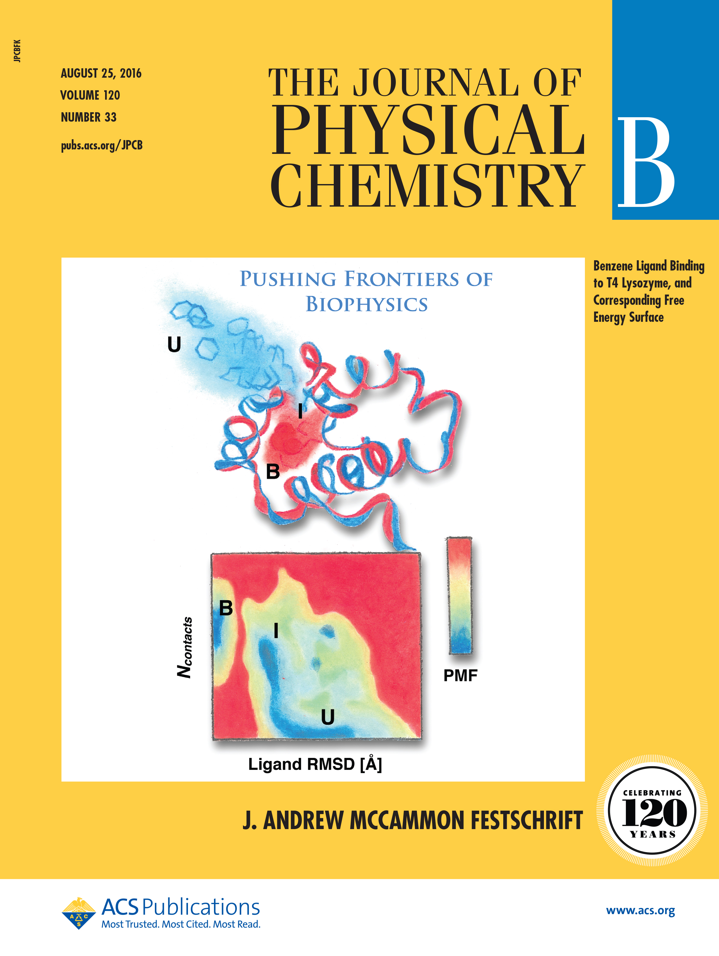 Cover of the JPC B Special Issue in honor of J. A. McCammon. August 2016, Vol. 120 Number 33